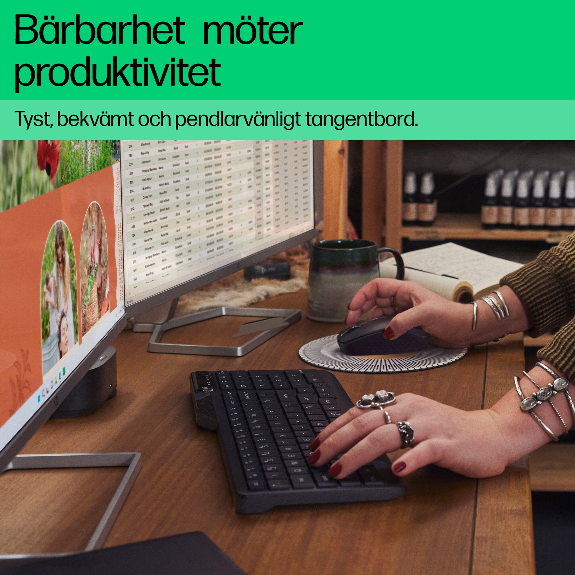 - Det bättre valet för en bättre morgondag – det trådlösa tangentbordet HP 475 Dual-Mode innehåller 50 % återvunnet material från förbrukade konsumentprodukter[2]. Med FSC-certifierade och plastfria förpackningar är det här Bluetooth-tangentbordet ett miljövänligt val som hjälper till att skydda vår gemensamma framtid samtidigt som det erbjuder fantastiska upplevelser.